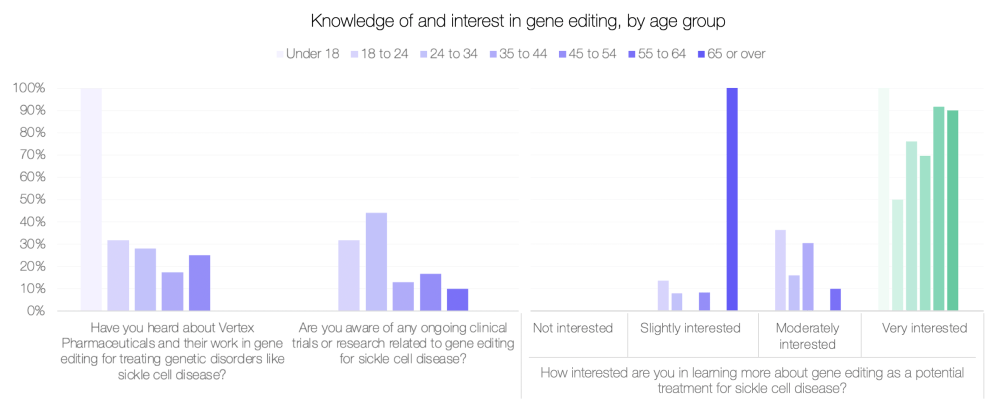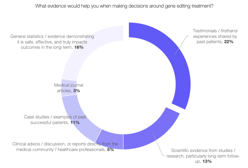 While the majority of patients (49 per cent) reported either ‘limited’ or ‘no’ awareness of gene therapies, with only 26 per cent aware of gene therapy clinical trials, our data highlighted that more than half of patients still felt that access to treatments like gene editing was ‘very important’.
