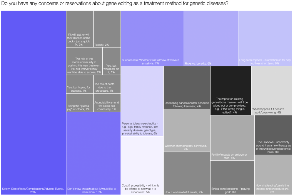 This was closely followed by general statistics or scientific evidence demonstrating long-term safety, efficacy, and outcomes following treatment – patients most commonly hoping to see a reduction in pain crises.