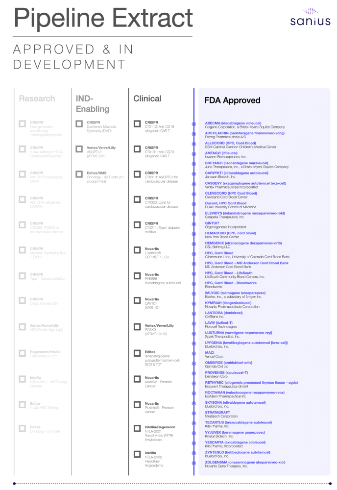 Already, therapies for conditions such as Duchenne muscular dystrophy (Elevidys), relapsed or refractory multiple myeloma (CARVYKTI), and Haemophilia B (HEMGENIX) have received regulatory approvals, with multiple trials ongoing and additional therapies on the way at research and IND-enabling stages.