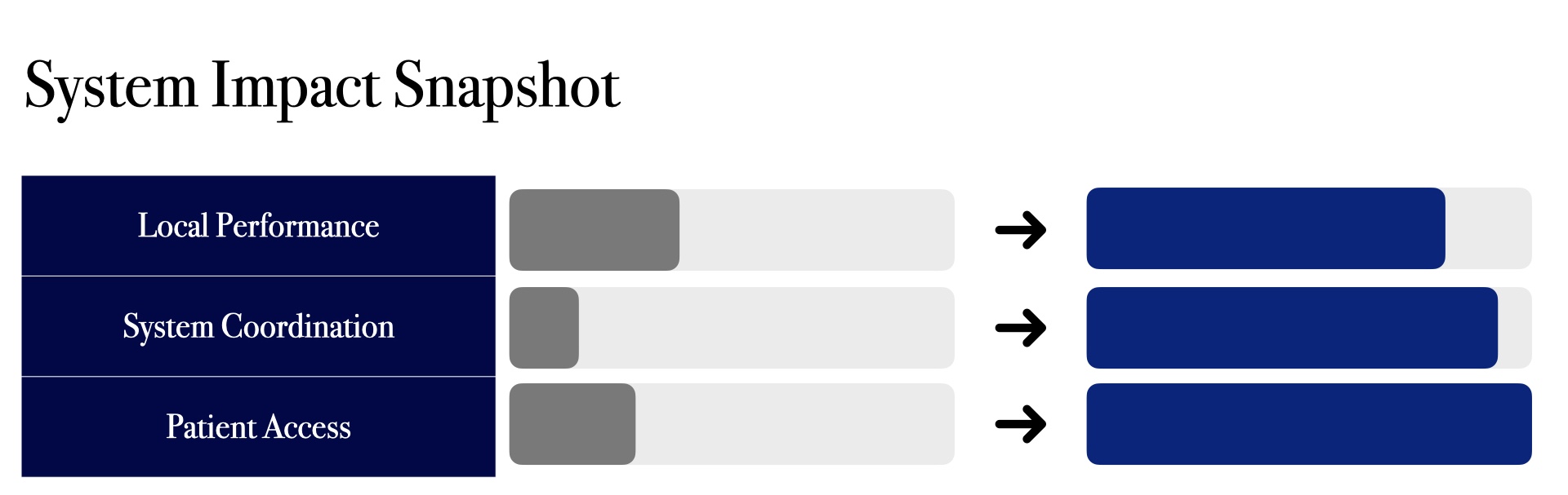 At a local level, performance improves through better utilisation and cleaner data. At a system level, access improves through coordination. Together, these effects compound.